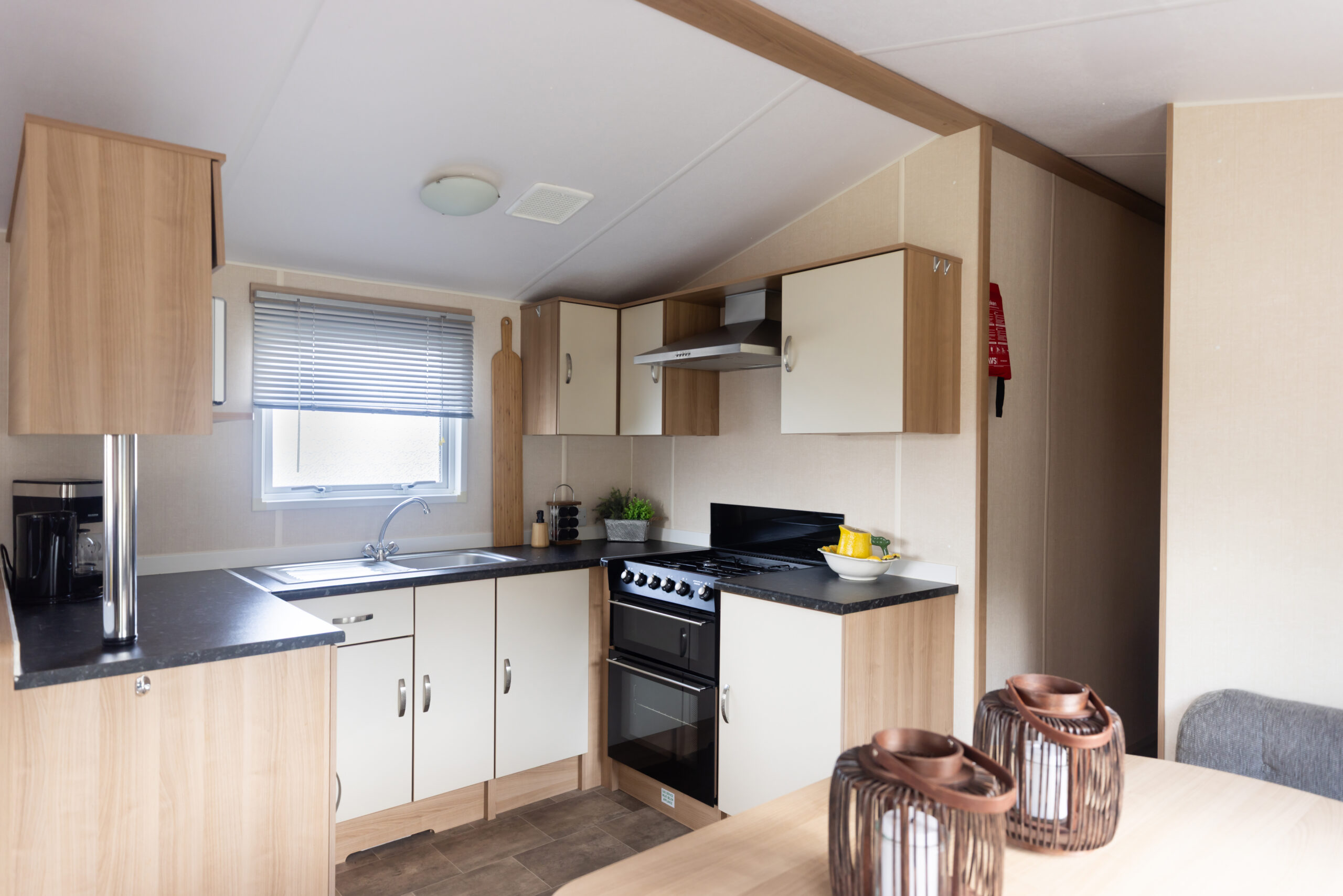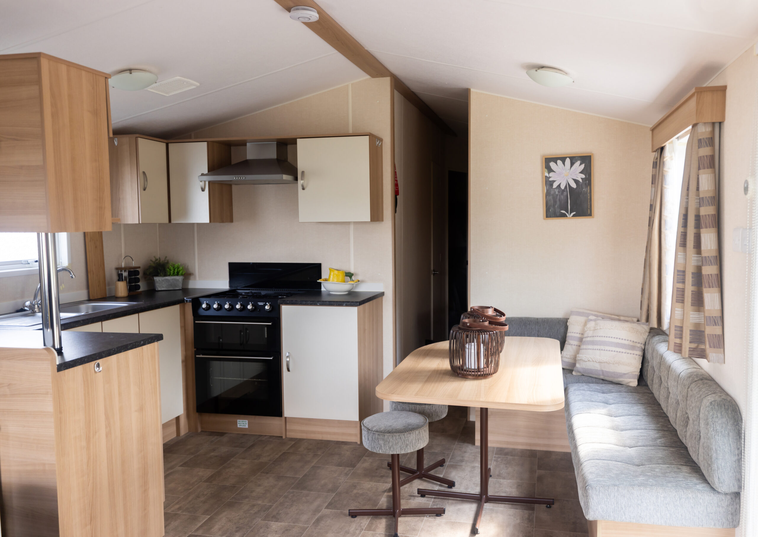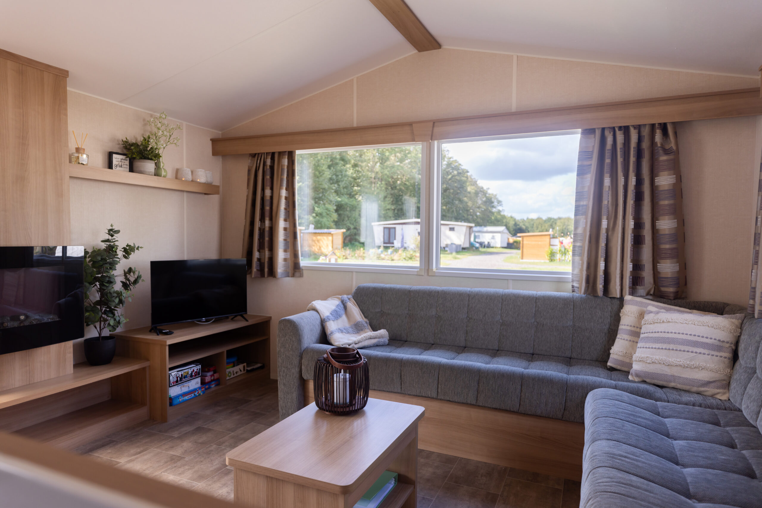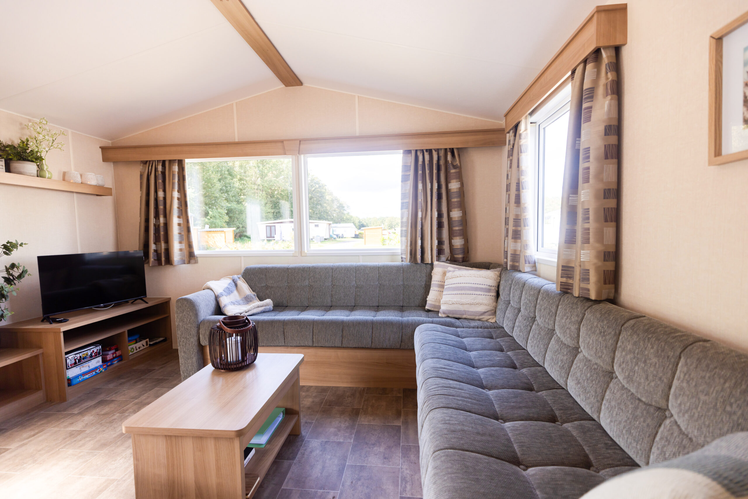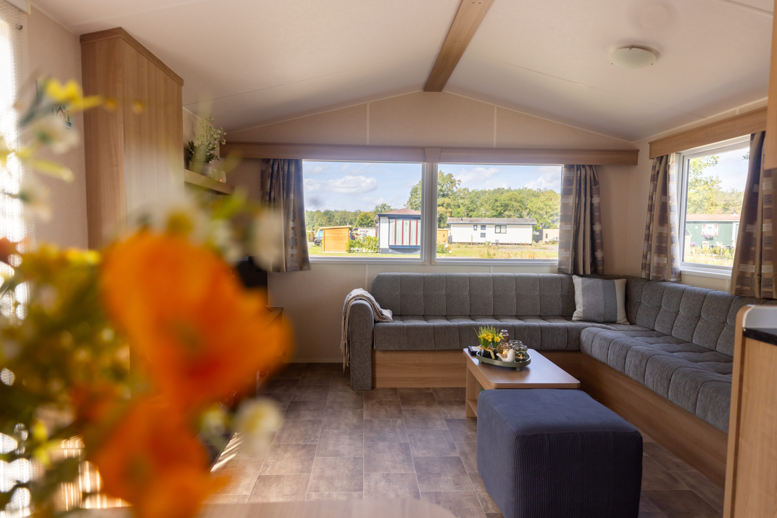 Na een actieve dag in de buitenlucht kun je heerlijk neerploffen op de ruime hoekbank, terwijl de eethoek perfect is voor lange, gezellige maaltijden met z’n allen.